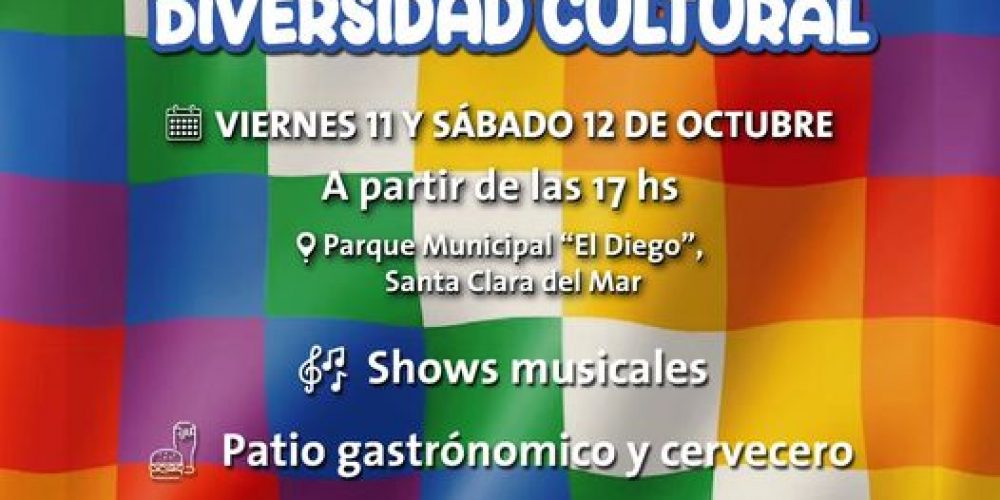 Este viernes 11 y sรกbado 12 de octubre, a travรฉs de la Secretarรญa de Cultura y Educaciรณn, celebraremos la diversidad y las raรญces culturales que nos unen. La cita es en el Parque Municipal El Diego de Santa Clara del Mar a partir de las 17 hs.